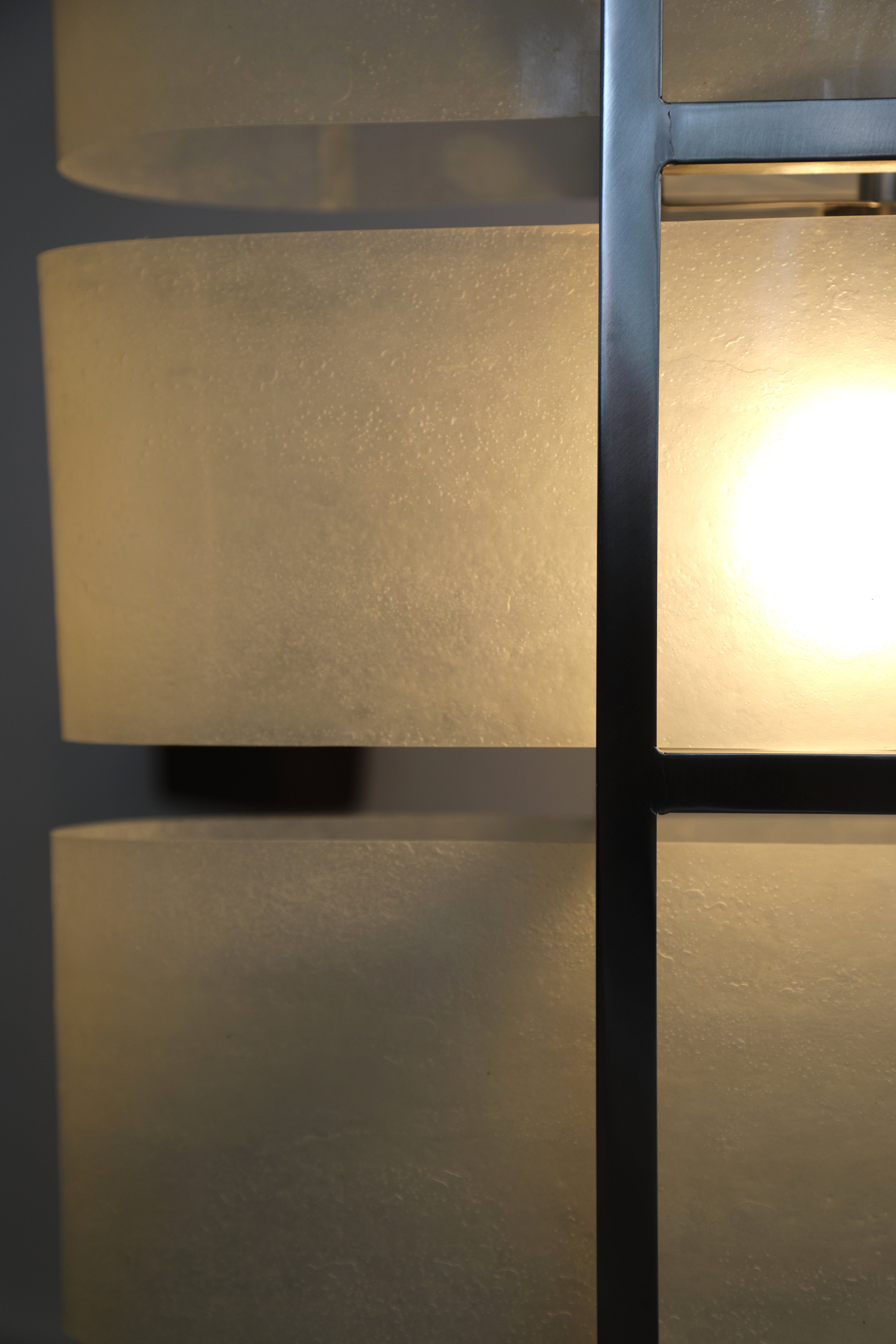 The organic shades are made from mulberry paper and finished with a linseed bio-coating, creating a strong material with an almost transparent glazed look. For the Walnut Glazed Paper Lamp I first handpainted the paper with natural oil and bister, before finishing it with the bio-coating. The resulting nuances of brown give the lamp a soft glow and a dim light.